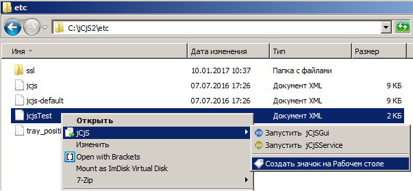 По умолчанию, используется главный конфигурационный файл C:/jCjS2/etc/jcjs.xml